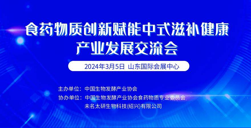 近年来,我国高度重视食药物质和营养健康产业发展,制定了一系列相关政策积极扶持。这些政策的稳步实施,为食药物质产业迎来了发展壮大的良好机遇,逐渐成为健康中国建设的重要组成部分。为加强行业创新水平,加深行业交流,进而更好地推动食药物质行业高质量发展,中国生物发酵产业协会定于2024年3月5日在山东国际会展中心召开“食药物质创新 赋能中式滋补健康产业发展交流会”。